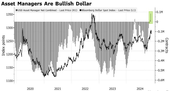 美国商品期货交易委员会(CFTC)的最新数据证实了这一观点。资产管理公司看好美元的程度创下自2016年以来最高水平,这突显出美元下跌的可能性,因为投资者对从美元走强中受益的头寸进行获利了结。