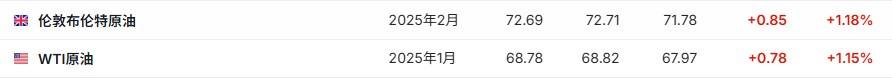 3. 截至发稿,WTI原油涨1.15%,报68.78美元/桶。布伦特原油涨1.18%,报72.69美元/桶。