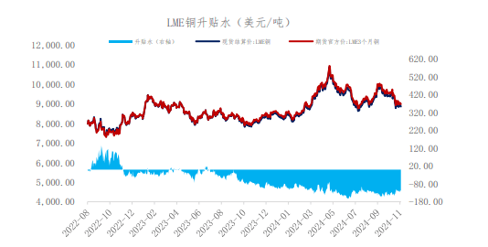 需求方面,政策刺激依旧提供边际支撑,新能源汽车,家电以旧换新表现依旧亮眼,需求边际韧性仍存,近期铜价下跌,下游情绪好转,华东华南现货维持升水,沪铜远期合约维持Contango结构,市场预期向好。总的来看,当下影响铜价的主要矛盾为海外美元走强施压铜价对比国内消费需求仍具韧性,预计后市偏强震荡,操作上,多头低位轻仓试多。