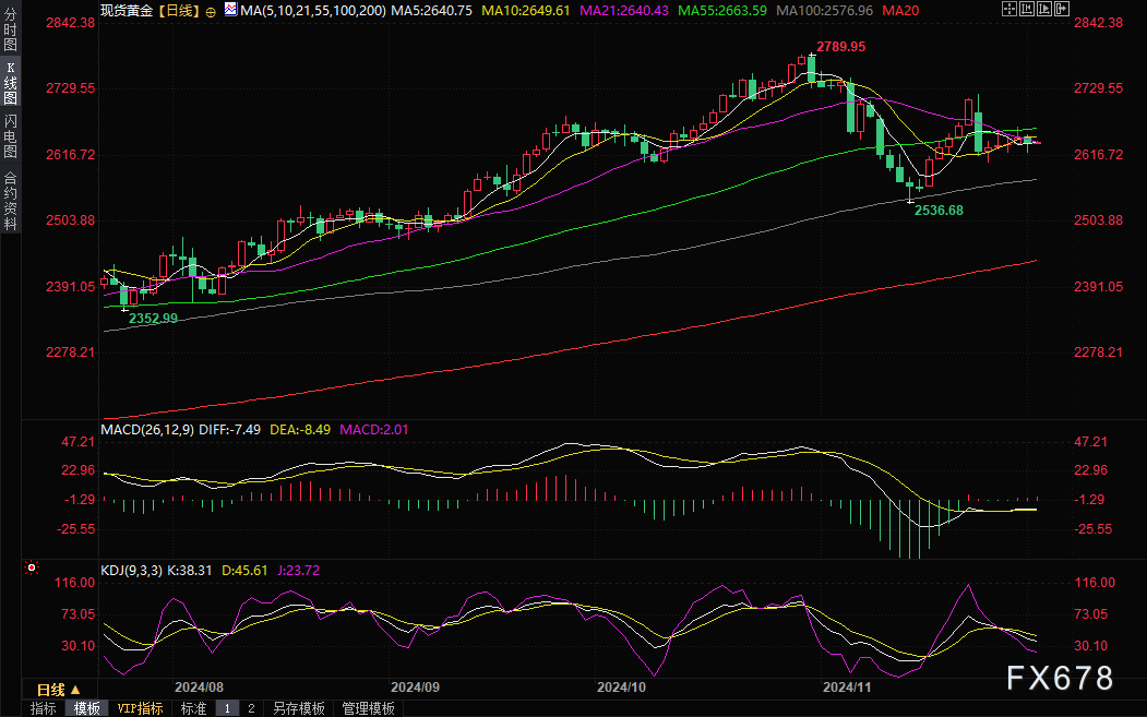 汇通财经APP讯——周二(12月3日)亚市盘初,现货黄金震荡微涨,目前交投于2641.13美元/盎司附近。金价周一下滑0.44%,收报2638.69美元/盎司,结束了四日连涨的势头,因法国政治危机升级,美元大幅反弹,不过,法国局势也给金价提供一些避险支撑,另外,多位美联储官员认为美联储将进一步降息,市场对美联储12月降息预期升温,仍给金价提供支撑。