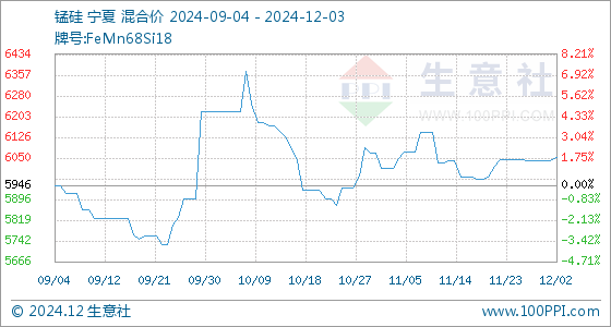 12月3日生意社锰硅基准价为6054.00元/吨