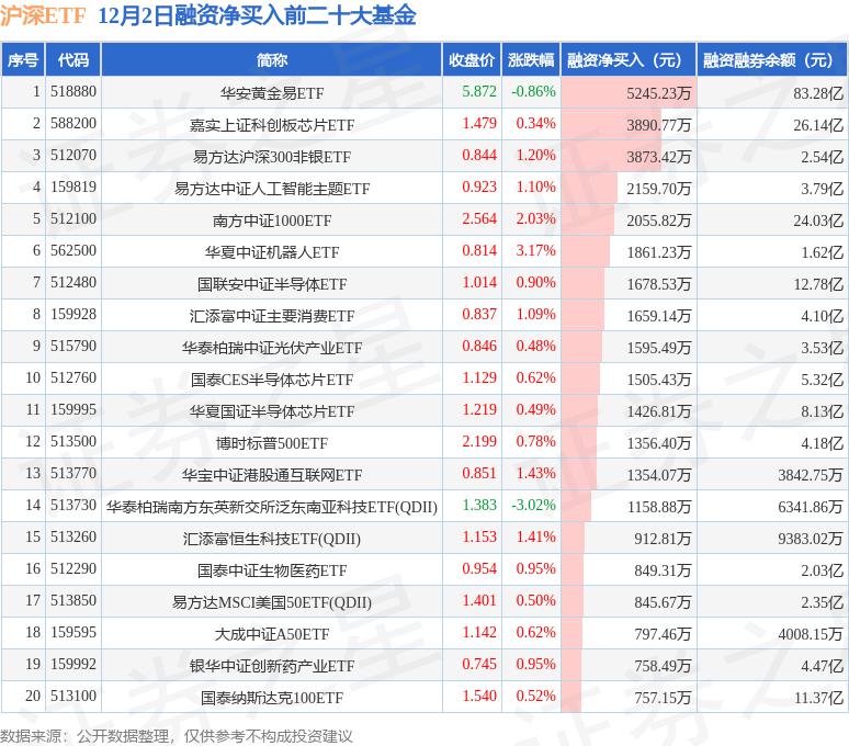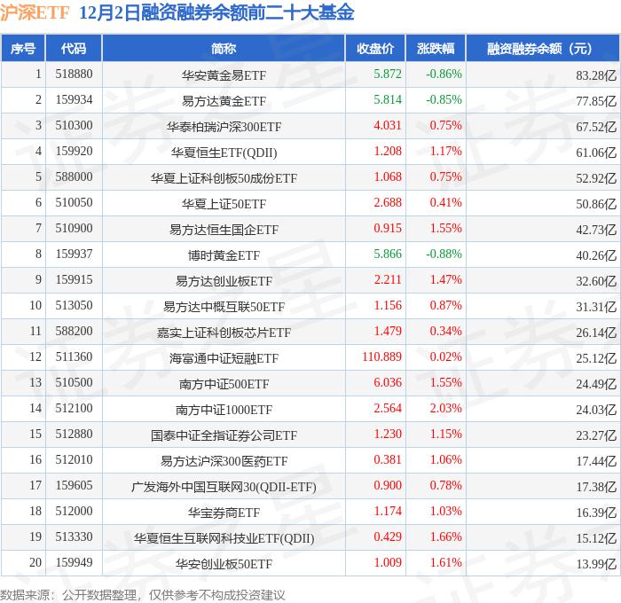 12月2日沪深ETF融资净买入排行榜:华安黄金易ETF融资净买入居首