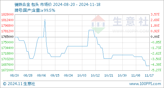 11月18日生意社镝铁合金基准价为1685000.00元/吨