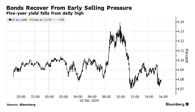 交易员表示,大量公司债券发行推动了周一收益率的初步飙升,而有关以色列和真主党上月停火协议破裂的报道也帮助推动了收益率的逆转。