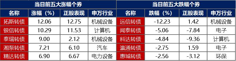【转债市场主要指数跟随收涨】 12月2日,转债市场跟随权益市场继续上涨,当日中证转债、上证转债、深证转债分别收涨0.48%、0.34%、0.72%。当日,转债市场成交额861.87亿元,较前一交易日放量15.25亿元。转债市场个券多数上涨,534支转债中,457支上涨,62支下跌,15支持平。当日上涨个券中,拓斯转债涨超12%,银信转债涨超10%,泰瑞转债涨超9%;下跌个券中,远信转债跌逾12%,闻泰转债跌逾5%,科达转债跌逾4%。