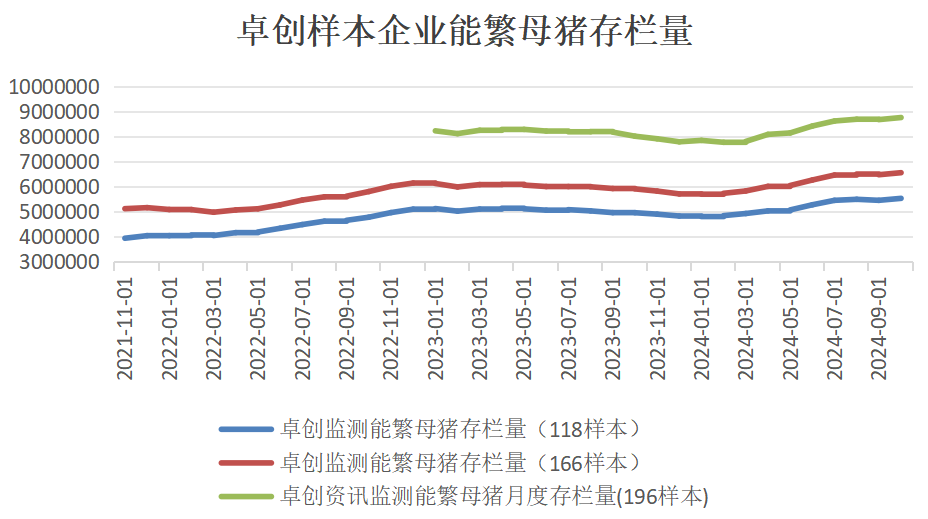 卓创资讯数据显示,10月份样本企业能繁母猪存栏量基本稳定,生猪存栏量环比增加,样本企业出栏量明显增加,规模场出栏相对稳定,并且出栏节奏相对靠前,从农业农村部数据看,后续理论生猪供应量呈现增加态势,加上上游养殖户压栏行为,预计后续生猪供应相对充足。
