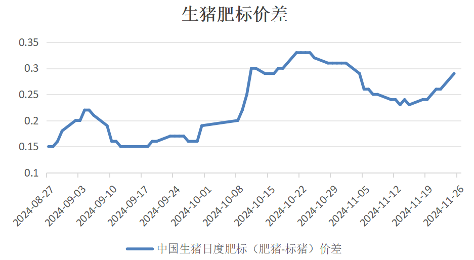 近期随着天气气温下降,下游腌腊需求启动支撑需求,肥标价差走扩,但毛白价差走势并不强,腌腊需求启动时间滞后可能抑制实际需求量,供应方面由于出栏体重偏高,前期压栏行为也导致后续供应量呈现增加态势,近期规模场出栏相对积极,但整体仍有压栏情绪,预计后续猪价反弹空间有限,建议顺势出栏,防止后续涨价不及预期。