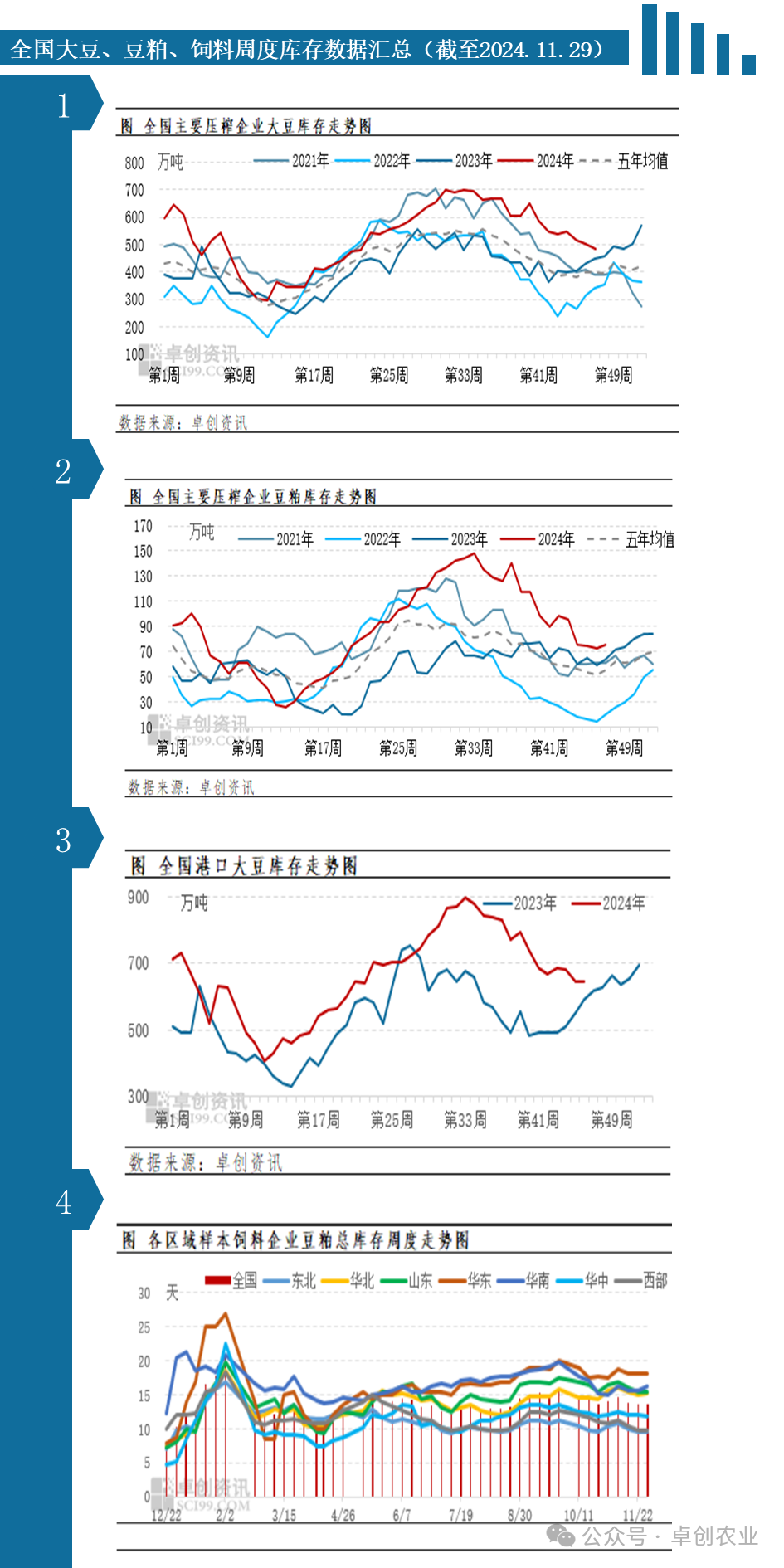全国大豆、豆粕、饲料库存周度库存数据汇总