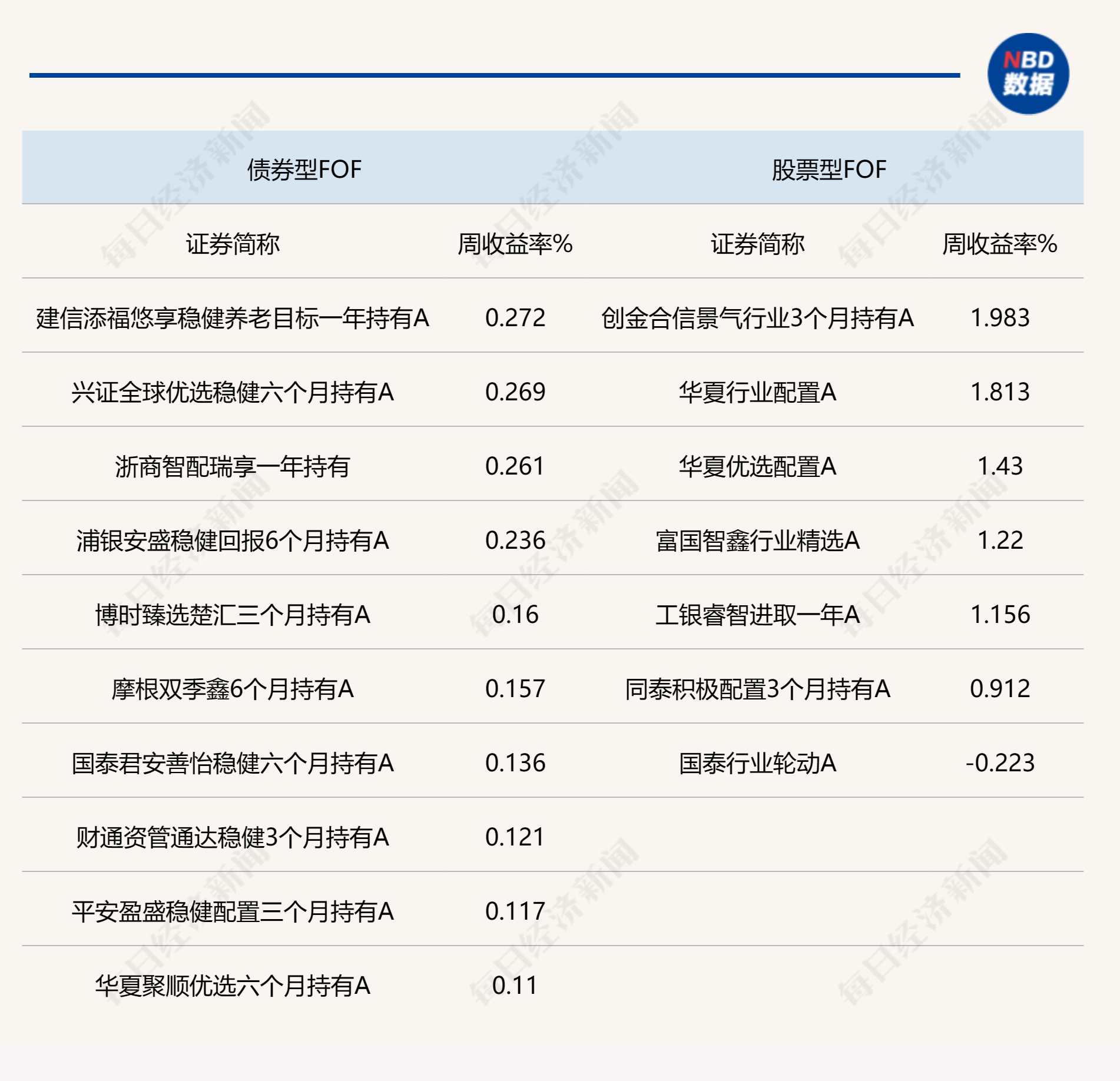 在其他的股票型FOF当中,华夏行业配置A、华夏优选配置A等基金在上周的业绩也表现不错,在所有类型公募FOF的单周业绩统计中名列前茅。