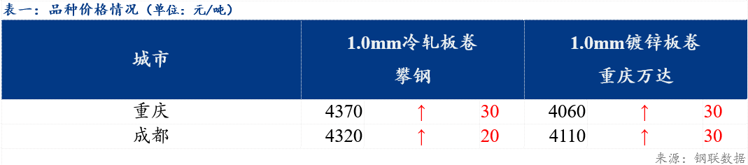 综合来看,西南市场冷轧和镀锌板卷的成交情况略有好转,钢厂结算成本持续高企,贸易商短期挺价意愿尚可。预计明日西南地区冷轧及镀锌板卷价格或将盘整运行。