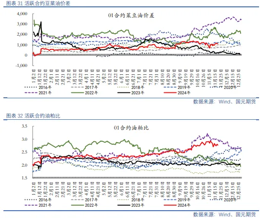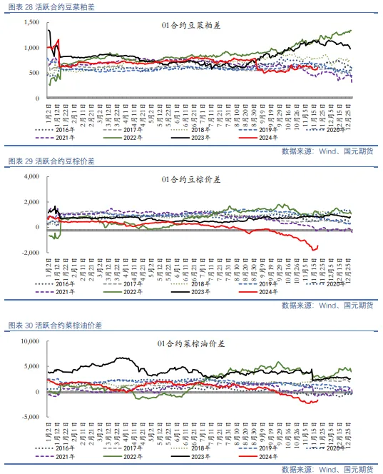 操作上,豆粕2501合约参考区间2800-3000,菜粕2501合约参考区间2100-2300。