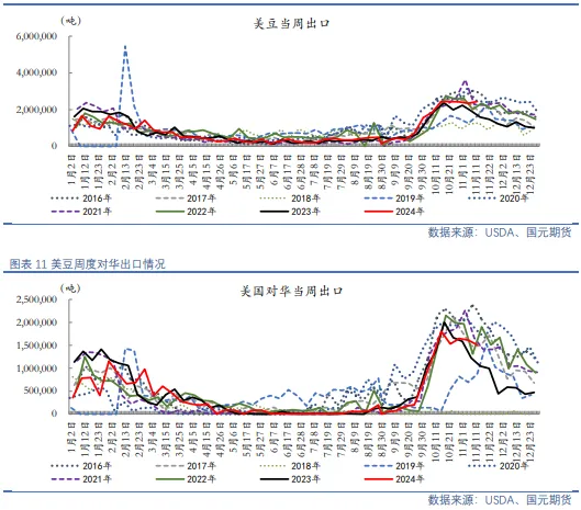 【出口销售报告前瞻:大豆出口销售量估计150~250万吨】周四为美国感恩节,美国农业部出口销售报告将会顺延到周五发布。市场预计这份报告将会显示,截至2024年11月21日的一周,美国大豆出口净销售量位于150~250万吨。上周美国2024/25年度大豆净销量为186万吨。