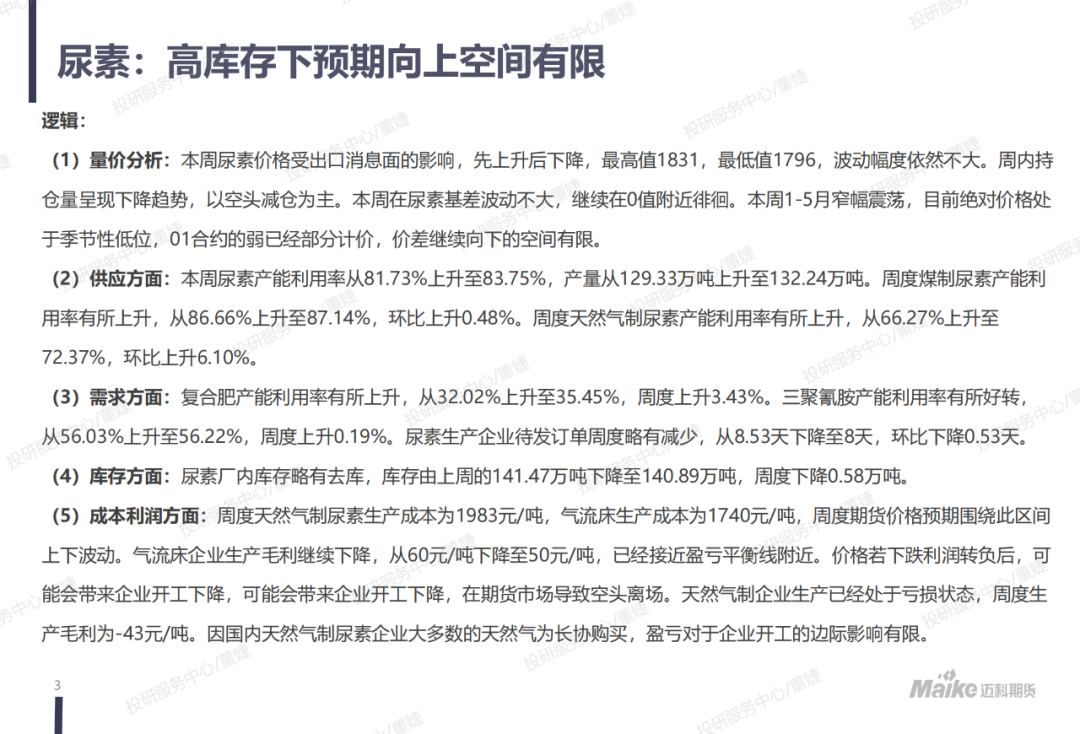 【迈科尿素周报】高库存下预期向上空间有限