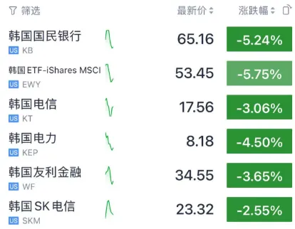 美股开盘之后,在美国上市的韩国资产全线暴跌。