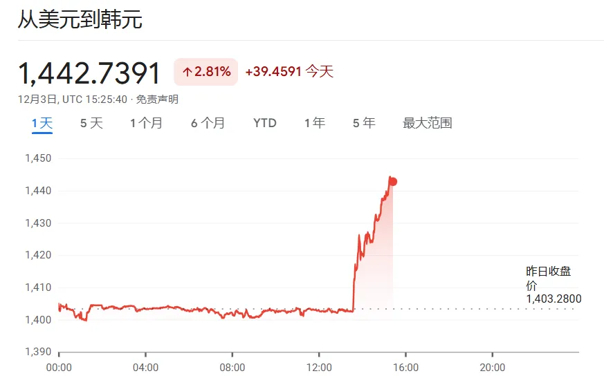 消息发布后,韩元汇率闪崩,暴跌近3%。