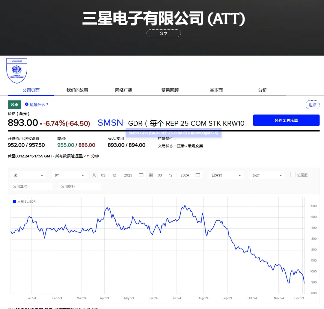 而在伦敦交易所上市的三星电子股价暴跌超6%。