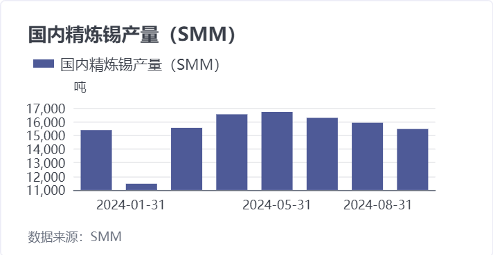 产量方面:根据SMM最新的评估,2024年10月,我国精炼锡产量展现出显著的复苏趋势。在经历了9月份由于原材料短缺及部分冶炼厂停产检修所带来的产量锐减之后,伴随着部分冶炼企业的复工,10月份锡锭的总体产量已呈现出明显的上升态势。在云南地区,尽管从缅甸进口的锡矿数量依旧维持低位,但相较于9月份,10月份的进口量已有所增长,这在一定程度上缓解了该地区的原料压力。此外,随着部分冶炼企业结束了停产检修并在10月份恢复了正常运营,这为云南地区产量的回升奠定了坚实基础。与此同时,江西的冶炼企业在面对原料供应的挑战时,积极寻求解决方案,如通过拓宽废锡的采购渠道等举措,以确保当前产量的稳定。在内蒙古和广西地区,冶炼企业的生产活动则继续保持平稳。然而,在安徽及其他地区,由于原料难度的增加,冶炼企业的产量受到了一定程度的影响,预计其后续产量或将面临维持的困难。