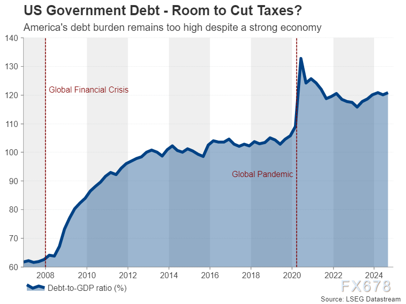 (美国政府债务水平尽管经济强劲,债务负担过高)