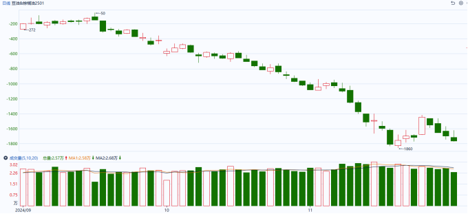 现货均价与期货P2501基差+160元/吨,较上一交易日扩大112元/吨。