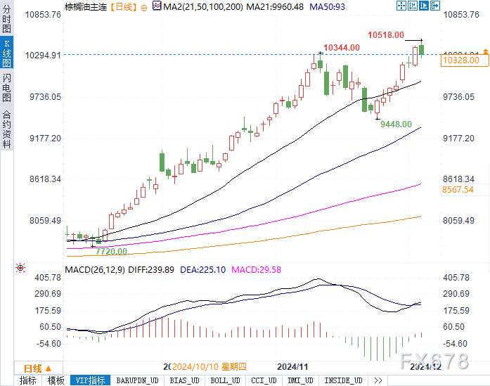 与此同时,印尼将其12月份的原油棕榈油(CPO)参考价格从11月份的961.97美元/吨上调至1071.67美元/吨,出口税相应提高至每吨178美元。这一政策调整可能会对棕榈油的国际贸易流向产生影响。