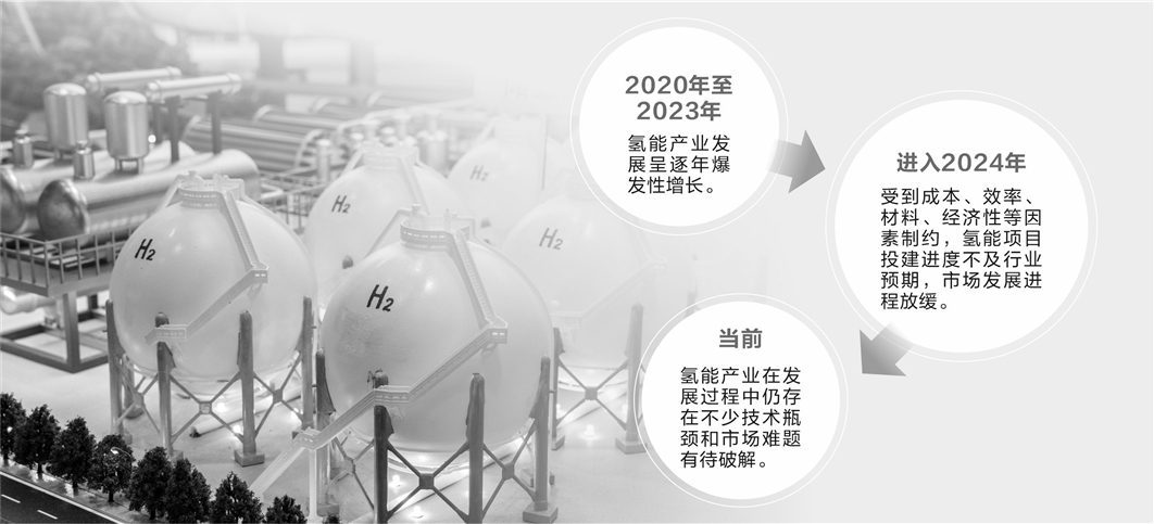 采访中氢能行业人士多谈及,从相关数据分析,2020年至2023年氢能产业发展呈逐年爆发式增长,但进入2024年,受到成本、效率、材料、经济性等因素制约,氢能项目投建进度不及行业预期,市场发展进程放缓。当前,氢能产业在发展过程中仍存在不少技术瓶颈和市场难题有待破解。