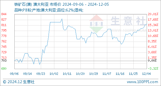 12月5日生意社铁矿石(澳)基准价为815.67元/吨
