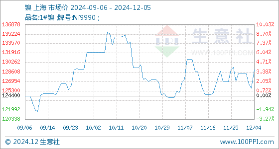 12月5日生意社镍基准价为129025.00元/吨