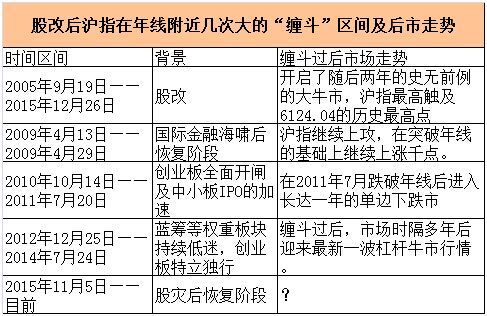我们选取沪指上穿年线的几个重要节点,统计了股改以后沪指围绕年线缠斗的情况。这样的情况大致出现5次(将相隔较近的上穿年线又向下跌破年线的情况合并在一个区间)。整体数据显示,年线的确对市场走势产生了巨大影响,年线缠斗的时间少则一个月,多则近两年,缠斗过后,市场都选择了运行方向。
