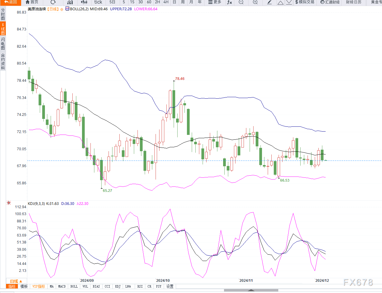 技术层面上来看,美原油日线测试布林线中轨之后再次回落,且KDJ指标开口再次向下,同时受到均线压制,短期维持区间对待,若无法突破70美元整数关,则不排除再次测试布林线下轨67美元附近的可能性。