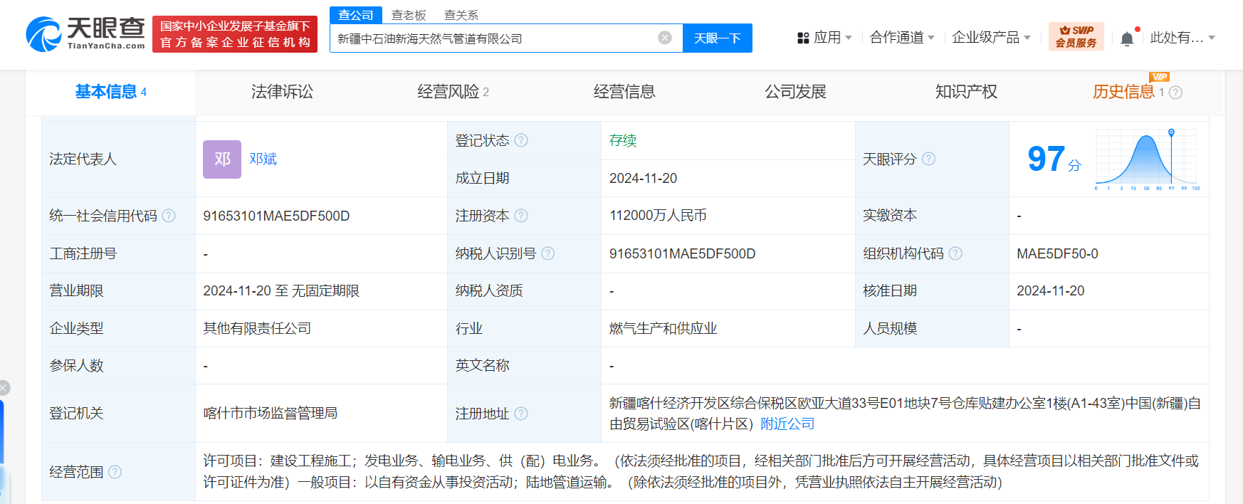 中国石油等在新疆成立天然气管道公司注册资本11.2亿