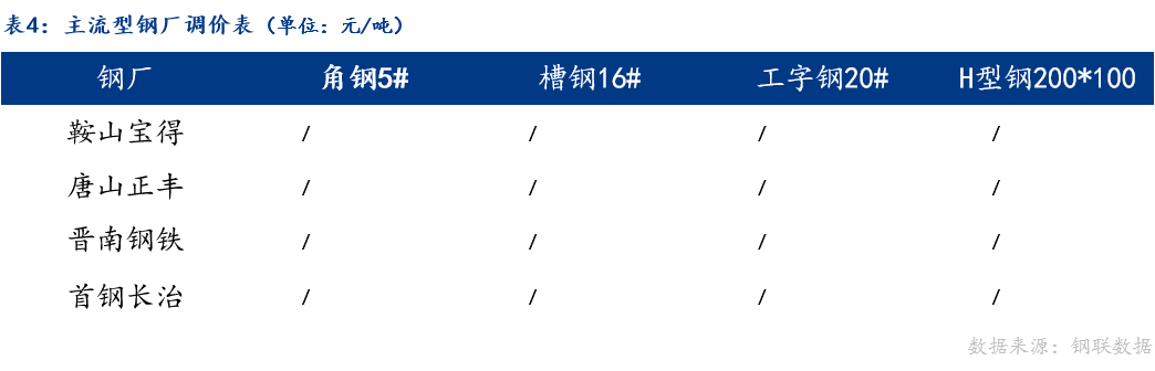 华北型钢:今日华北型钢价格持稳运行,期钢持绿震荡,市场交投氛围清淡,午后无明显改善,整体成交偏弱。今日型材市场采购积极性普遍不高,交投主要集中在低价资源,部分厂商优惠力度加大。午后原料方坯价格下调,市场情绪继续走低,型钢成本端支撑力度减弱。目前仍就处于供需双弱格局,且常规需求淡季下未见宏观利好提振,短期型材价格或继续走低。综合来看,预计华北型钢价格窄幅趋弱调整。