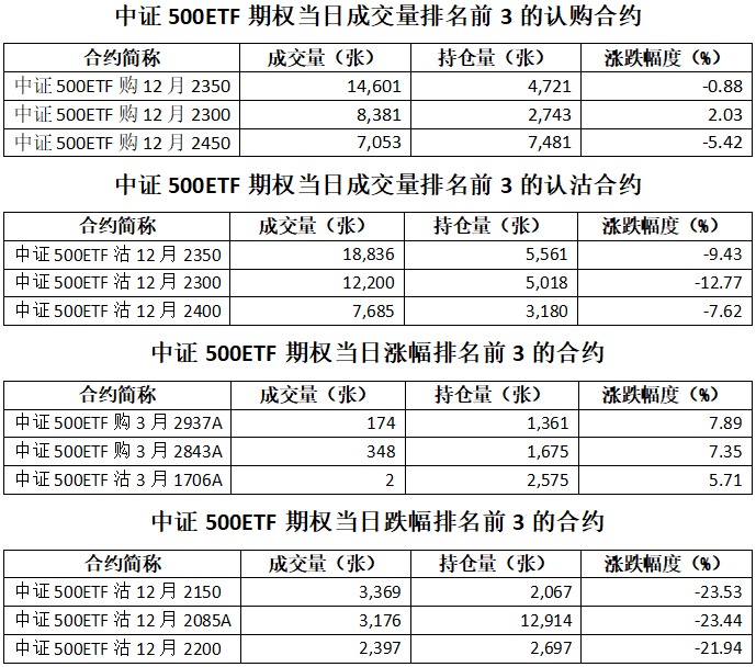 中证500ETF期权总成交面额47.69亿元,减少14.55%,期现成交比为0.02,权利金成交额0.90亿元;期权总成交量145,252张,减少10.94%,其中认购期权成交量70,407张,认沽期权成交量74,845张,认沽认购成交比率为1.06(上一交易日认沽认购成交比率为1.14)。