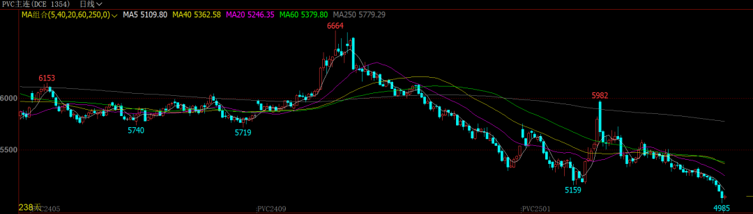 近一个月以来,PVC期价连续下跌,市场情绪较为低迷。周三,PVC期货跌破5000元/吨关口,最低触及4985元/吨,创四年来新低。在国内商品多数下跌的大背景下,PVC此波行情的调整在预期之内,但价格下跌的幅度却超出市场预期。