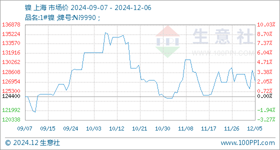 12月6日生意社镍基准价为127058.33元/吨