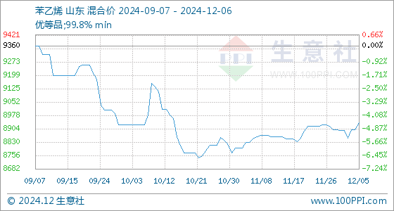 12月6日生意社苯乙烯基准价为8936.00元/吨