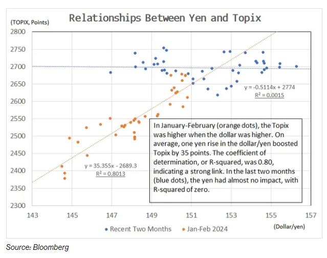 有迹象表明,投资者也变得更加精明,股指对日元波动的下意识反应基本上已成为过去。