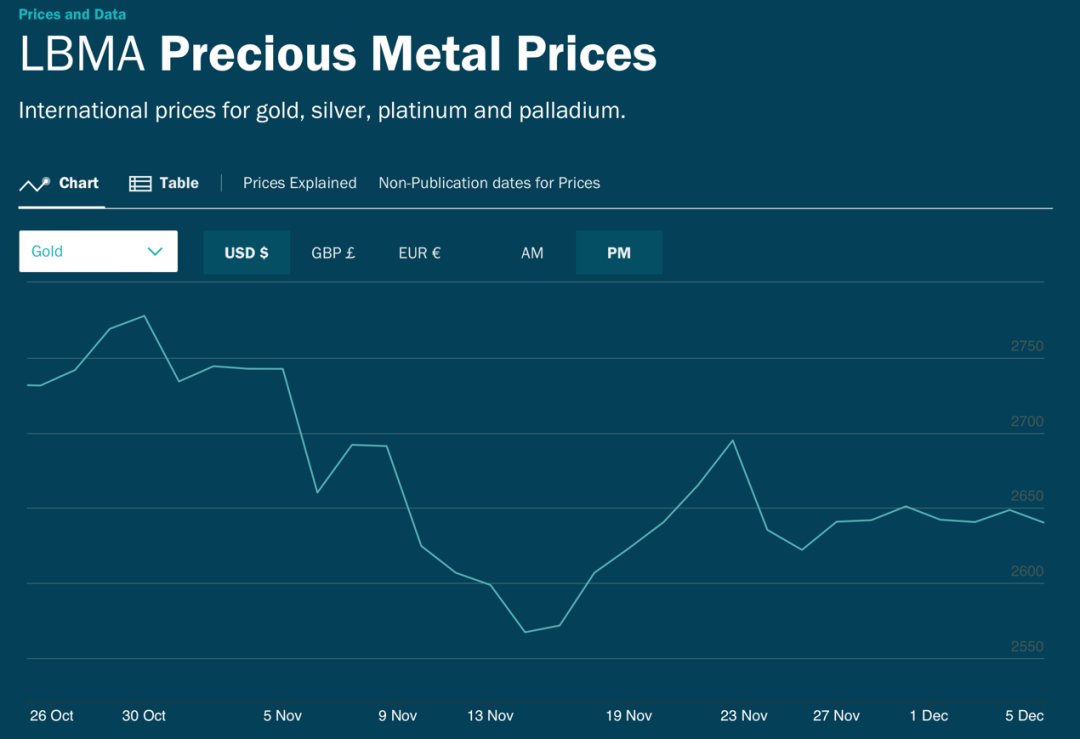 10月底至今伦敦金价格走势图(图片来源:伦敦金银市场协会)