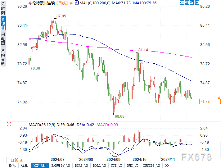 汇通财经APP讯——周五(12月6日)布伦特原油和WTI原油价格呈现小幅波动。截至北京时间下午5点31分,布伦特原油连续合约交投于73.55美元/桶,日内上涨0.70%,而美原油连续合约则报69.50美元/桶,日内上涨1.09%。然而,从周线表现来看,布伦特原油料将录得1.5%的跌幅,而WTI则有望小幅上涨0.2%。市场情绪在OPEC+近期决策的影响下依旧偏谨慎,供需两端的动态成为当前交易者关注的核心。