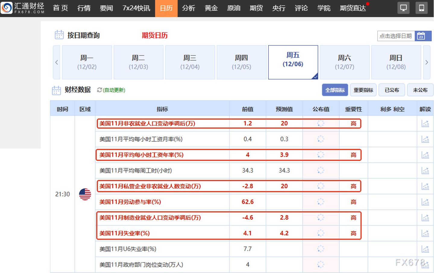 周五(12月6日)英镑兑美元交投于1.2760附近,触及三周高点。市场并未进行激进押注,而是选择等待将于今晚(12月6日21:30)发布的非农数据。