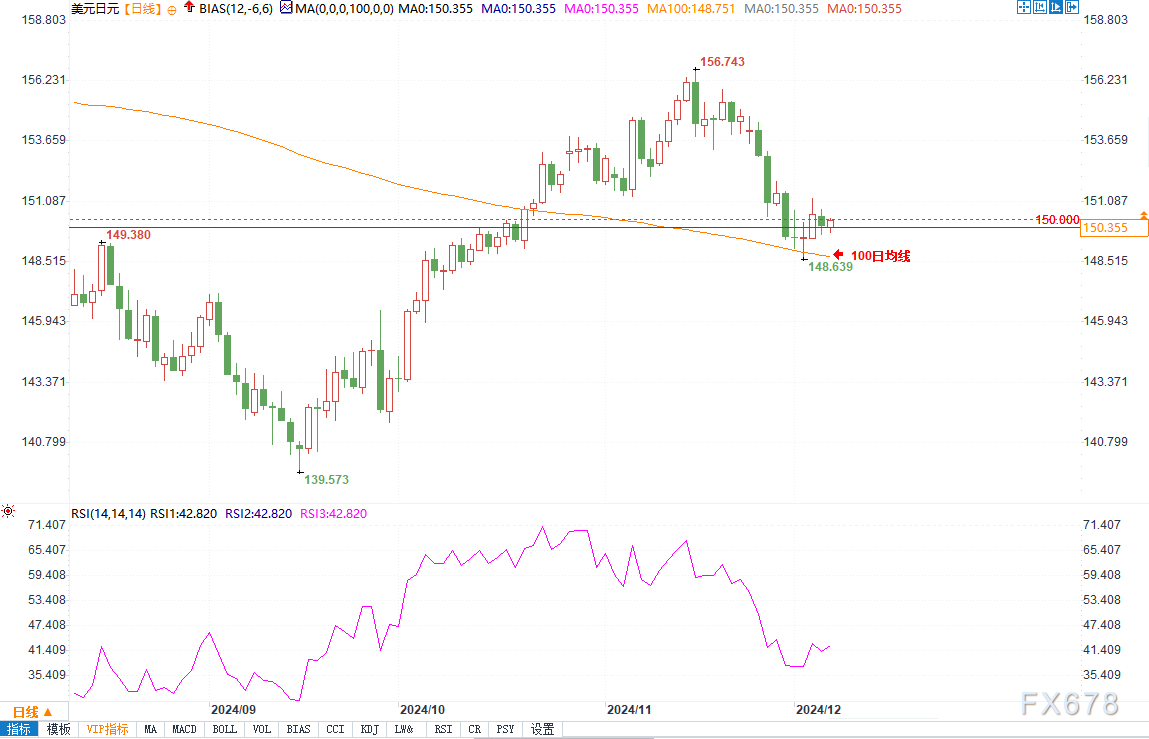 受到日本央行更加鹰派立场的支持,日元较美元表现出优势,周五(12月6日)美元兑日元暂显盘整,汇价在150.593附近。日本央行预计将继续加息,而其他主要央行,包括美联储,则预计进一步降息。全球风险情绪的转变以及美债收益率的近期下降共同支撑了日元。