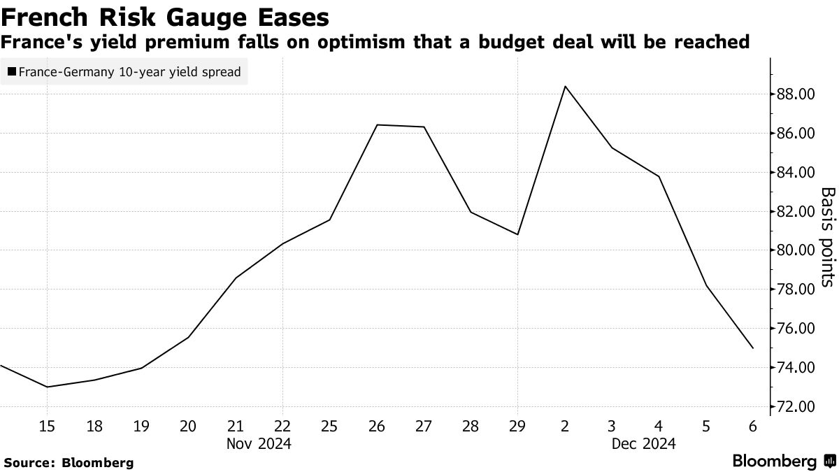 市场押注预算协议有望达成法国债券风险溢价降至两周低点