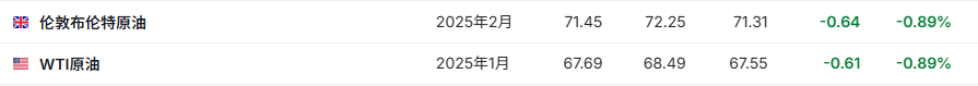 3. 截至发稿,WTI原油跌0.89%,报67.69美元/桶。布伦特原油跌0.89%,报71.45美元/桶。