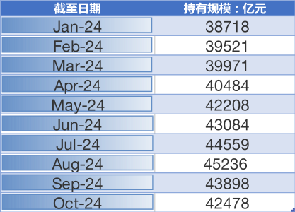 来自债券通公司的数据显示,截至10月底,综合上海清算所和中央结算公司数据,境外投资者持有中国境内债券金额为42478亿元(这一数据与央行公布数据相比略有差异),较2023年12月底的36689亿增加5789亿元。 今年以来,境外投资者对中国债券持有量持续上升。