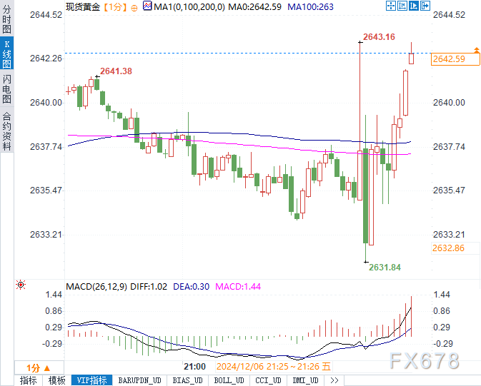 11月非农超预期,本月降息概率增加!黄金短线走高12美元,美指跳水30点