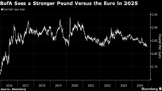 美国银行已俨然成为华尔街最大英镑多头。该行发布的2025年预测称,英镑兑欧元汇率将升至2016年以来高位,兑美元汇率将大涨8%。