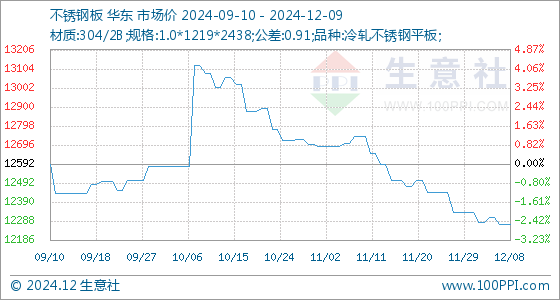 12月9日生意社不锈钢板基准价为12271.43元/吨