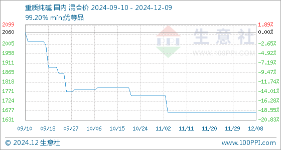 12月9日生意社重质纯碱基准价为1670.00元/吨