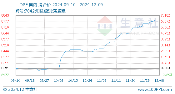 12月9日生意社LLDPE基准价为8783.33元/吨