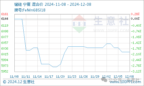 近期锰硅市场震荡偏弱运行,国储消息公布,市场情绪有所降温,逐渐回归基本面,因南方成本居高不下,供需博弈继续,厂家低价出货意愿较低,但钢厂压价情绪持续,供需博弈增强。据生意社商品行情分析系统,上周末锰硅在宁夏地区的市场报价在6000-6050元/吨左右,市场均价6024元/吨,较上周初稍下跌0.50%。