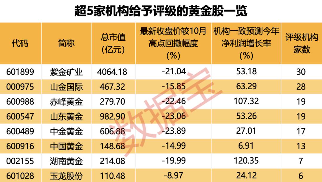 截至目前,紫金矿业、山金国际、山东黄金等8股的机构评级家数均超5家,且机构一致预测这8股今年全年净利润均有望呈现增长。